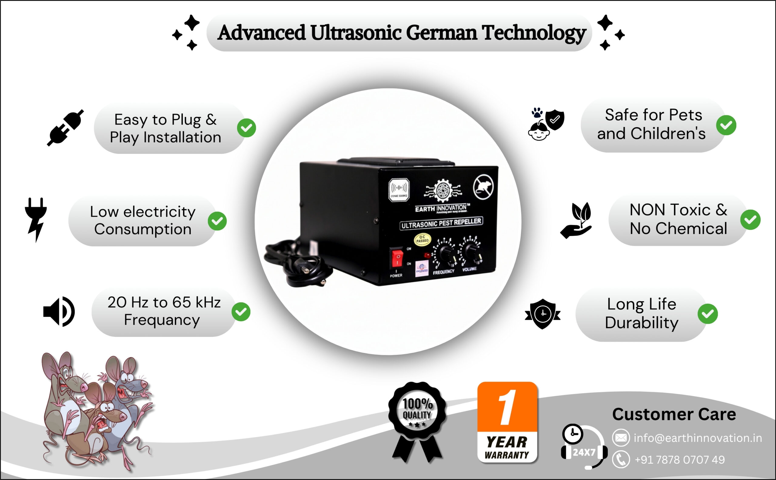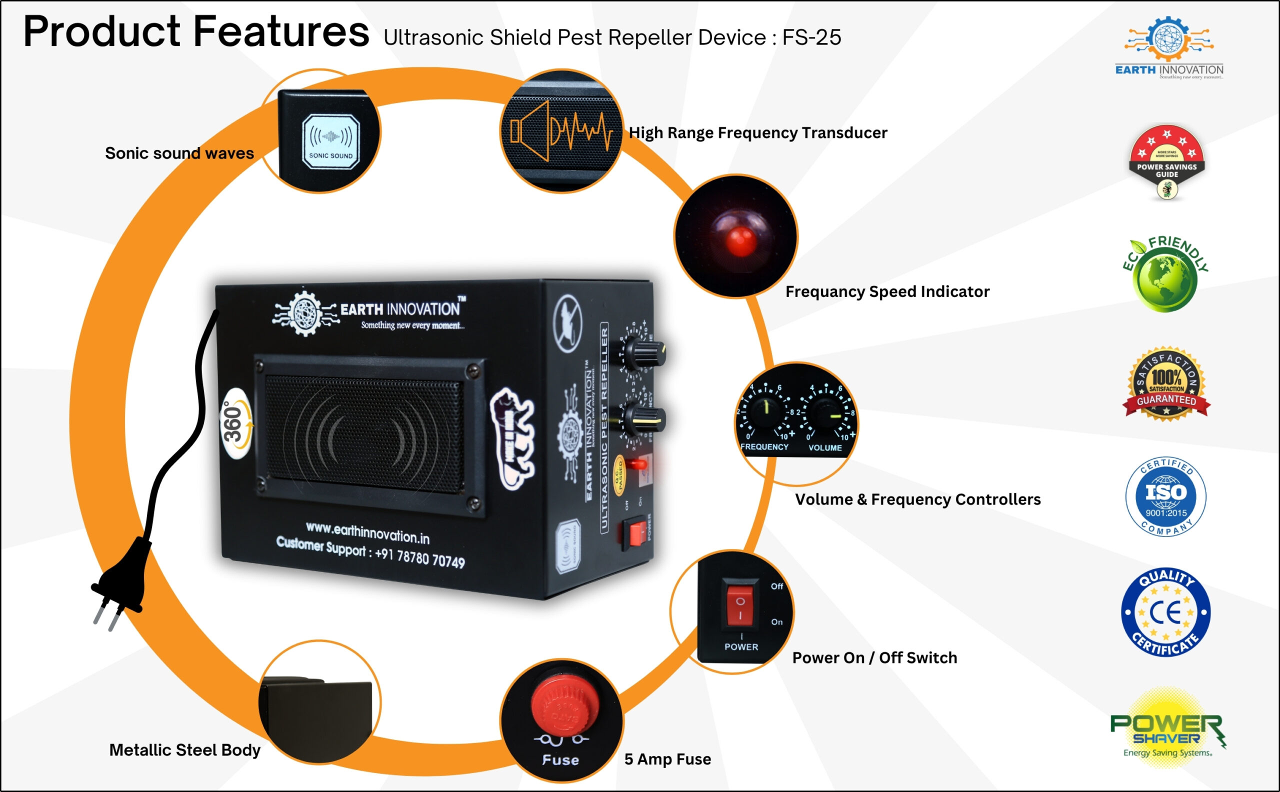 ⭐ EXTRA BENIFITS 💰 : This Ultrasonic Shield Pest Repeller™ machine will save you thousands of rupees in paying for termination of pest control services and also prevent damage to your equipment.