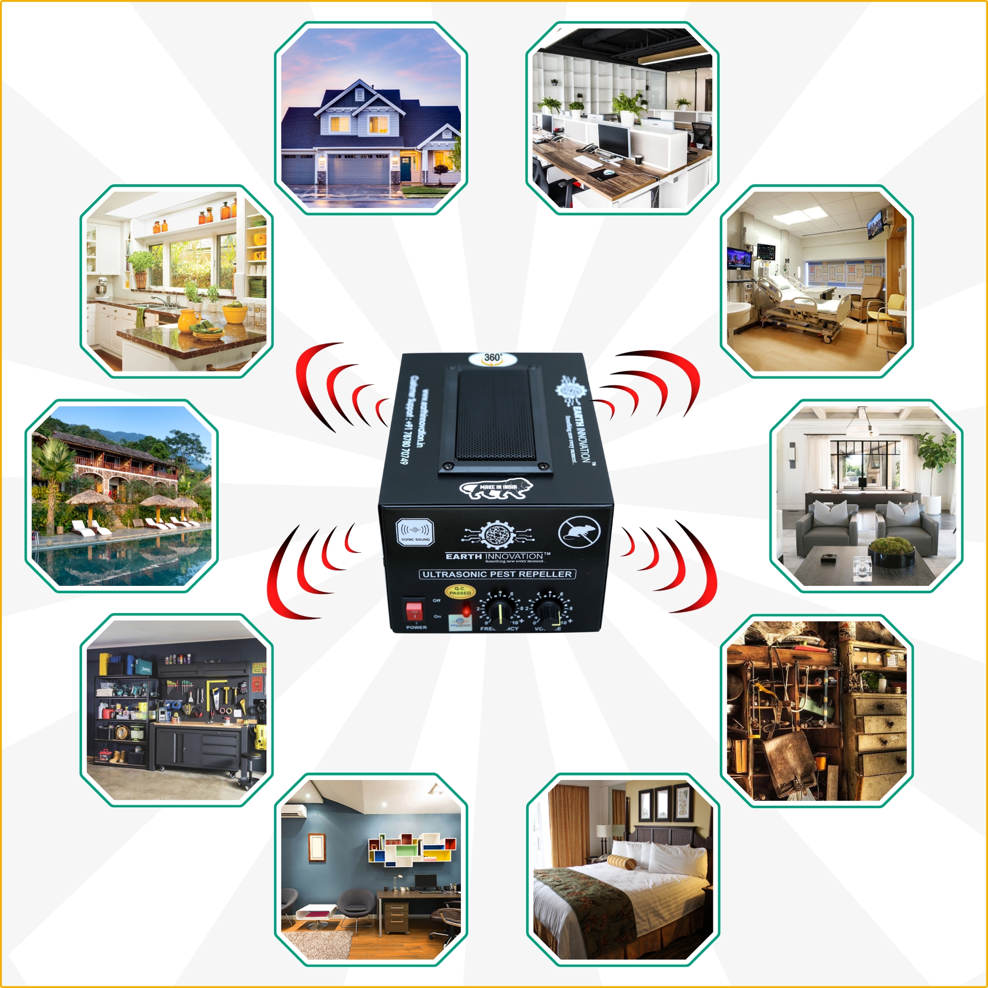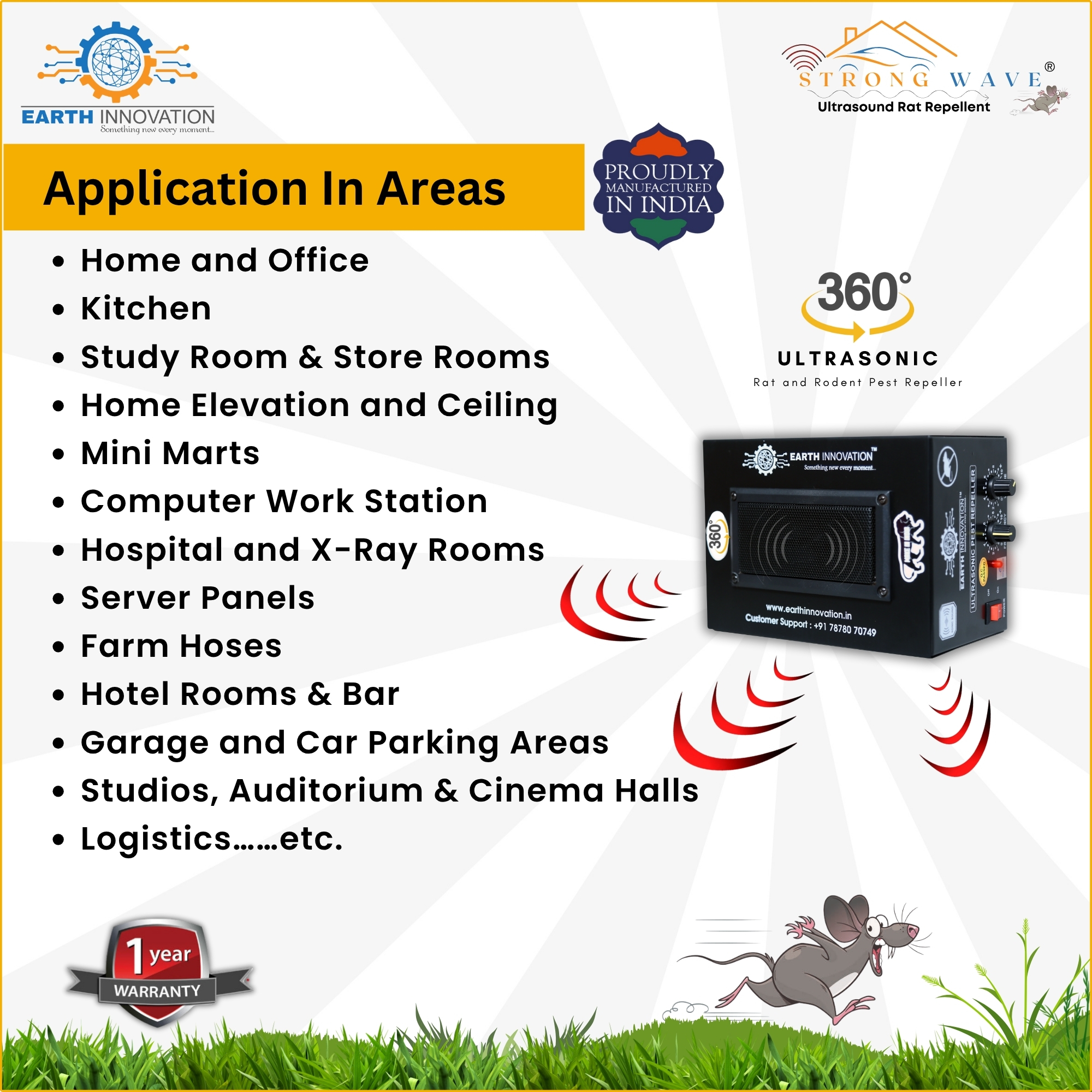 ⭐ COVERED AREA 🏠 : 1500 to 2000 Square Feet Close Area Covered. 📏 Electronic pest Repeller for use in large rooms, kitchens, garages, attic basements. Our device is used: Villas, houses, or feed storage places of farm houses, grocery stores, clothes shops, food stores, furniture stores, and warehouses in which rodents and pests often cause damage by gnawing. Farms, green houses, yards, lawns, gardens, balconies, plazas, barns, parking garages, garbage lots, etc. where rats might nest or mouse.🐀