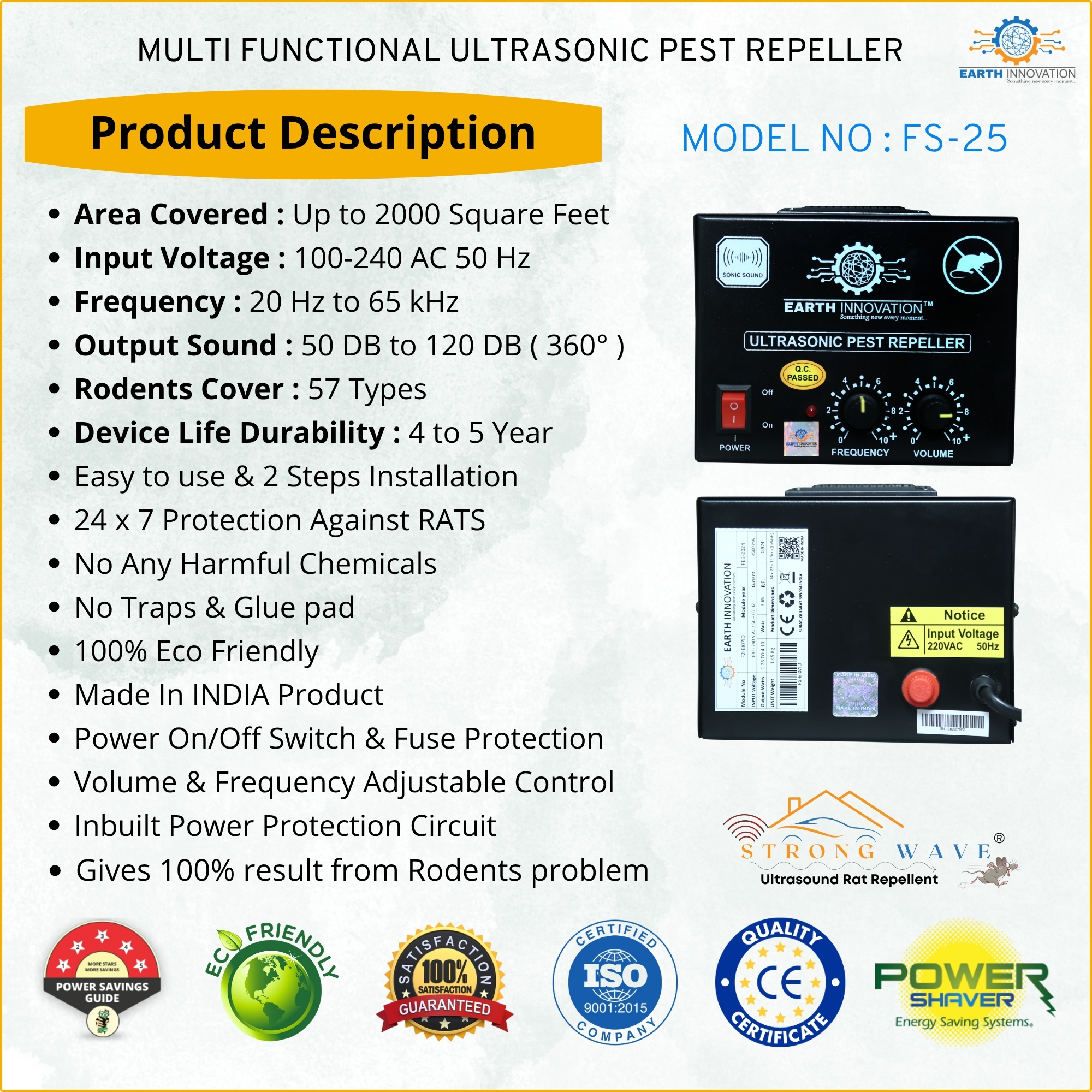 Model : FS-25 / Ultrasonic Rat and Rodent Repellent Device – 2000 SQ